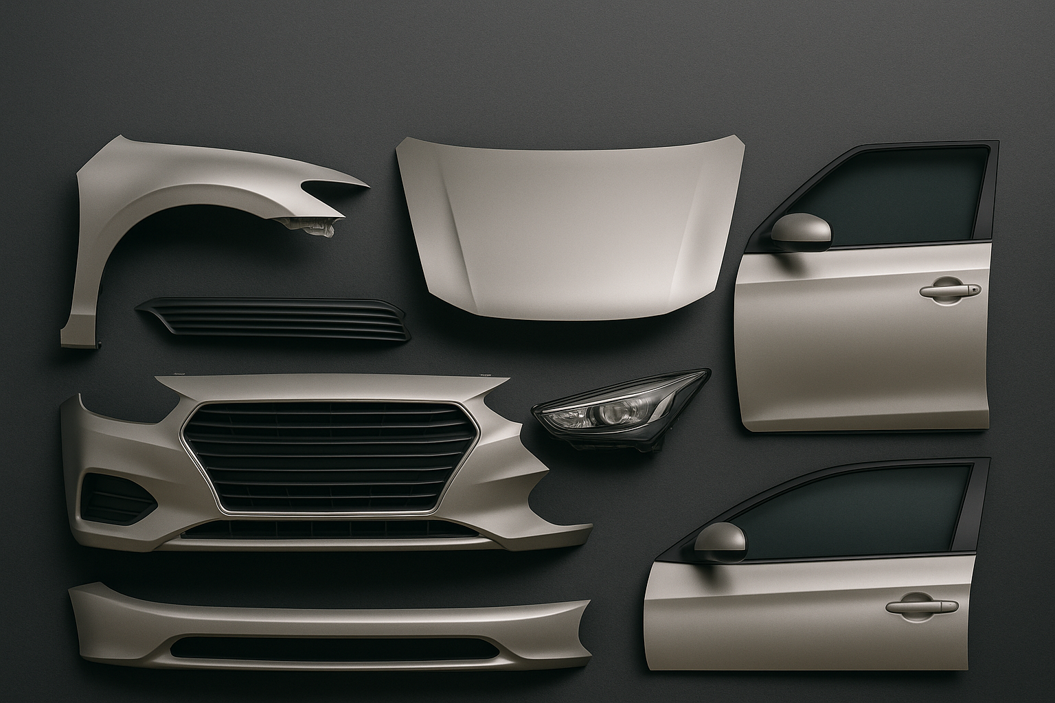 Damaged parts may need significant repair before installation due to mounting tab damage, cracks, or broken panels.